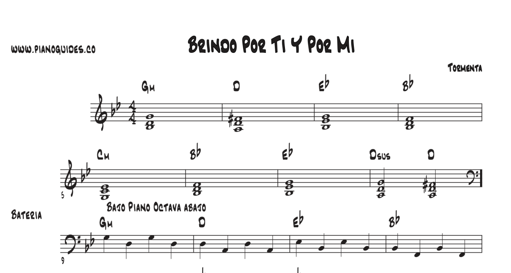 Para los temas de musica tropical, se escribe la nota que indica la inversion original de los tumbaos.