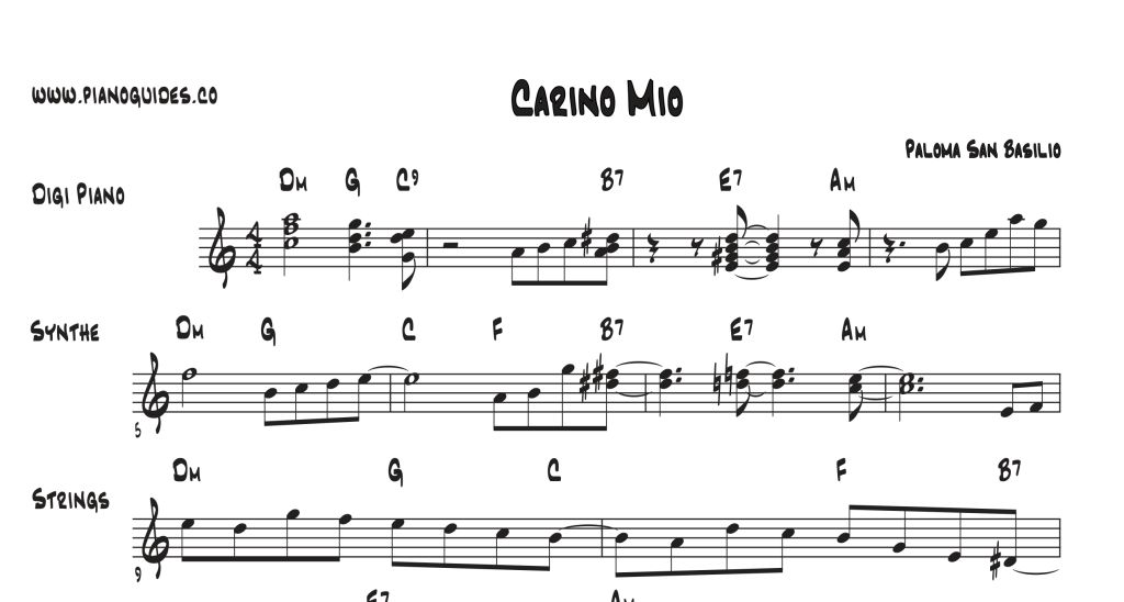 Pianoguides: Como su nombre lo indica, son “Guías”, no es una partitura de piano estricta, en clave de sol y clave de fa, que deba tocarse a la manera del Piano Clásico.