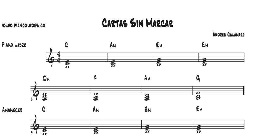 Pianoguides: Como su nombre lo indica, son “Guías”, no es una partitura de piano estricta, en clave de sol y clave de fa, que deba tocarse a la manera del Piano Clásico.