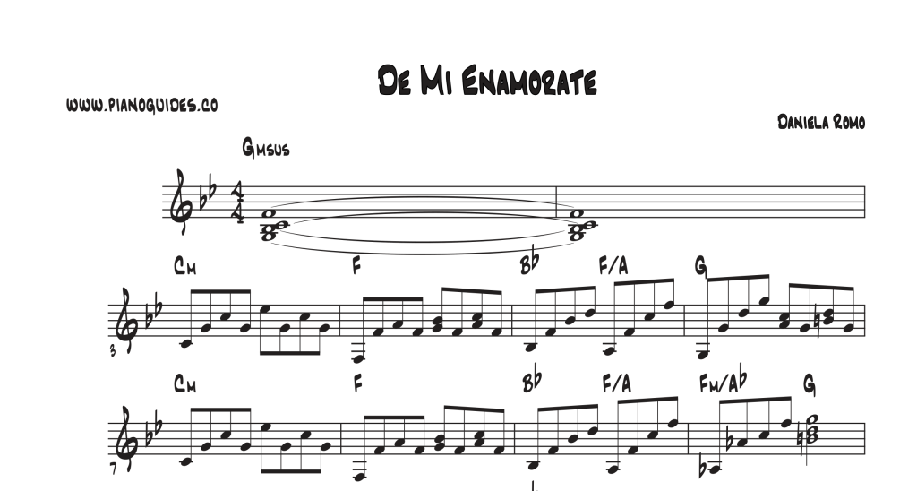 Pianoguides: Como su nombre lo indica, son “Guías”, no es una partitura de piano estricta, en clave de sol y clave de fa, que deba tocarse a la manera del Piano Clásico.