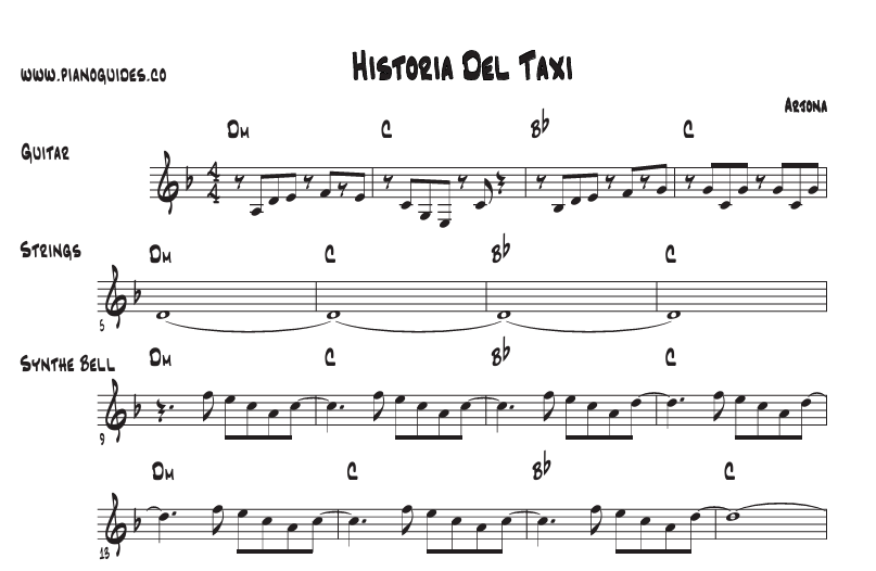 Pianoguides: Como su nombre lo indica, son “Guías”, no es una partitura de piano estricta, en clave de sol y clave de fa, que deba tocarse a la manera del Piano Clásico.