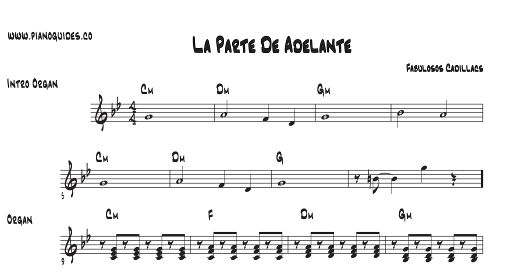 En cada una de las guías no solo esta escrita la armonía, “cifra” de las canciones, sino también los obligados de todos los solos de teclado, órgano, sintetizador, piano, cuerdas y acordeón, en el caso de los vallenatos.